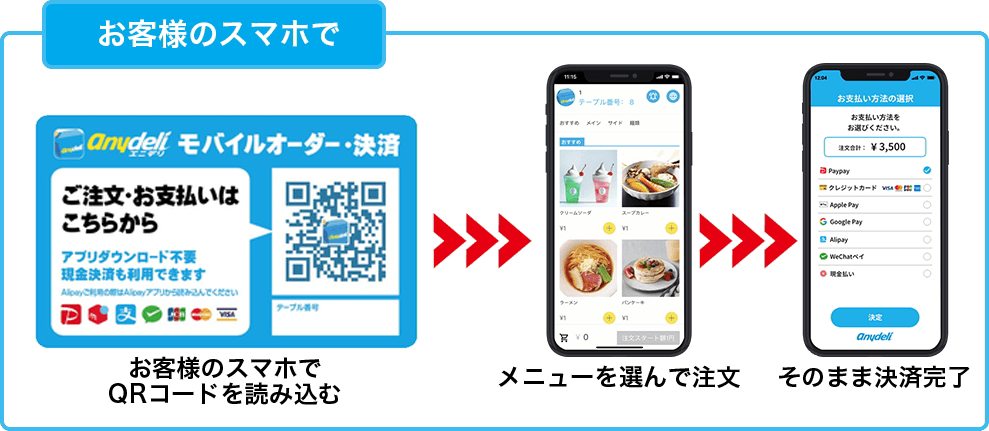 お客様のスマホでオーダーから決済まで可能な